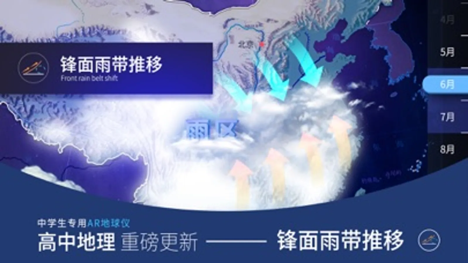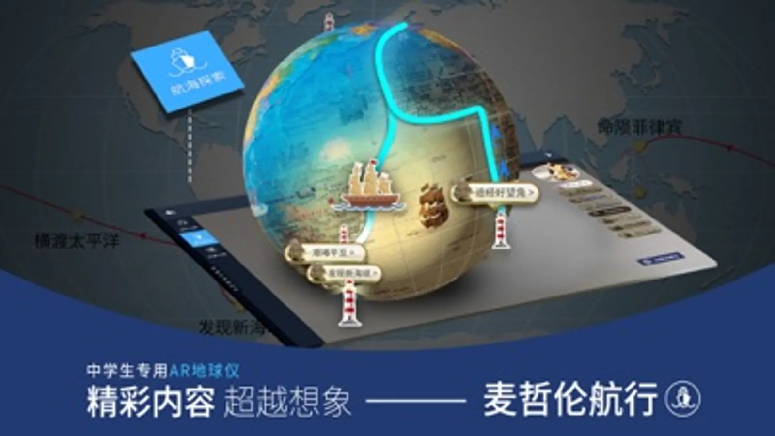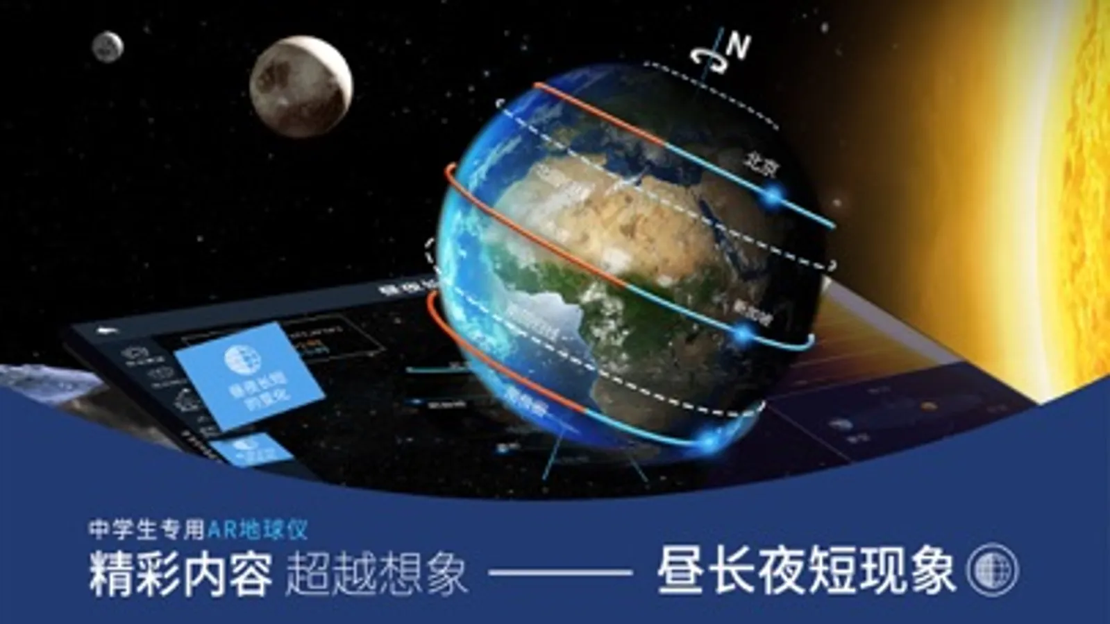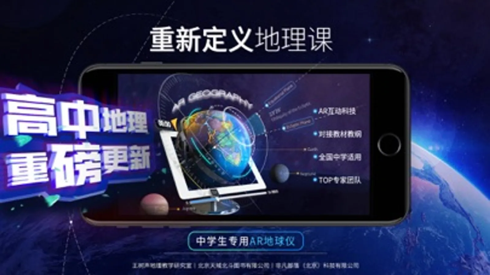 《中学生专用AR地球仪》是基于AR(增强现实)技术开发的全新地理教育类产品,内容针对七、八年级中学地理教材。我们将传统的地理图形认知教育进行革命性升级,使音频、视频、三维动画等多媒体元素展现于手机、iPad 等移动设备中,其技术含量更高,更注重知识点的互动操作功能,为学生们打造一个更加主动探索的学习场景。将给广大师生带来更加生动、震撼,学科知识理解无死角的体验!
