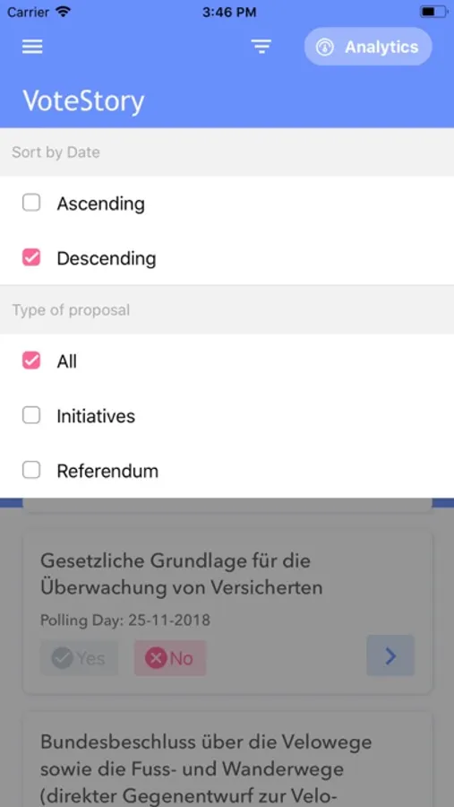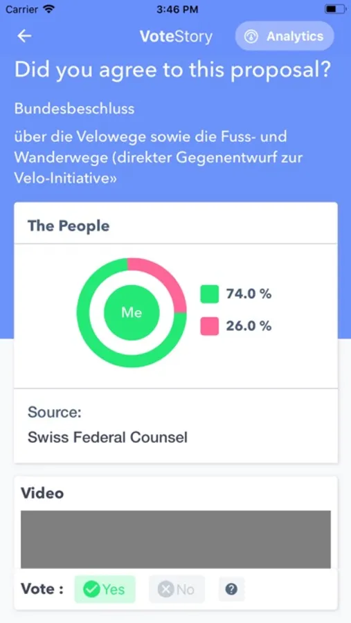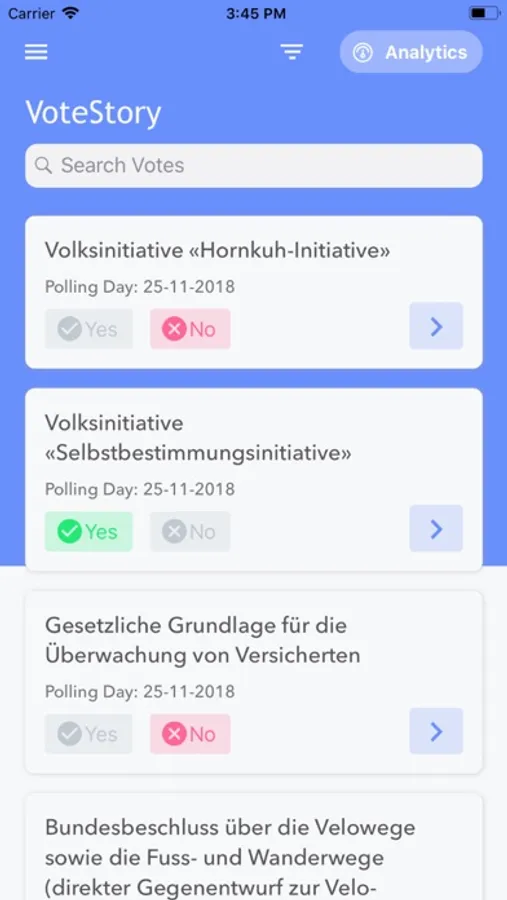 Do you remember what you voted in a referendum 1.5 years back? most people don't. Often, it takes a long time to implement a political proposal. In order to reflect on past decisions, Votestory helps you to save and remember voting decisions of the past years.
