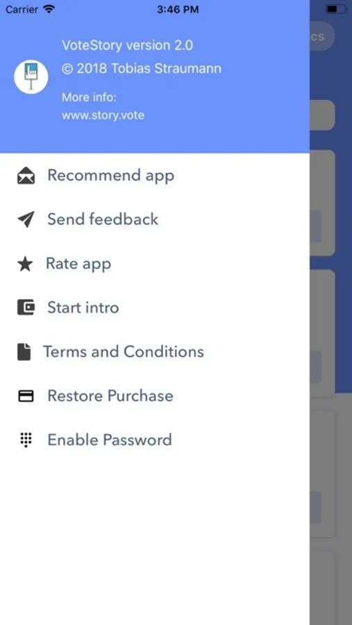 Votestory comes with premium features such as voting analysis. After a free trial period of 10 days you may purchase an auto-renewing subscription through an In-App Purchase. (If you do not maintain a subscription you can not use the premium features)