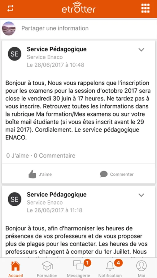 Le campus numérique eTrotter est directement accessible sur l’application pour permettre aux étudiants de suivre leurs cours et de consulter leur agenda, leurs résultats et les disponibilités de leurs professeurs ou et quand ils le veulent.