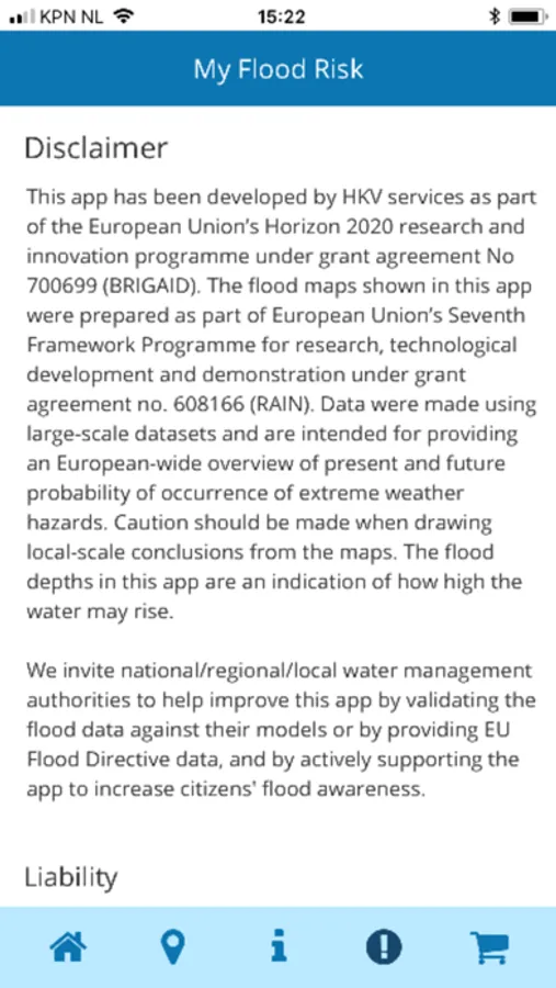 MyFloodRisk has been developed by HKV services. As a company in flood risk analysis, we find it important that science based information about floods is also easily accessible for the people who live in flood prone areas. This app therefore provides flood information in a comprehensive way for all European countries.