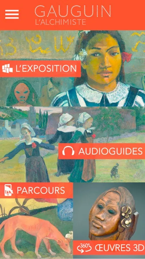 L'application « Gauguin l’alchimiste » est l’Application officielle de l’exposition qui se tient à Paris, au Grand Palais, du 11 octobre 2017 au 22 janvier 2018. Elle vous propose des informations sur l'exposition et des contenus étonnants comme de la reconnaissance d’images, à partir de nos publications, qui ouvre des œuvres de Gauguin en 3D et à 360° .