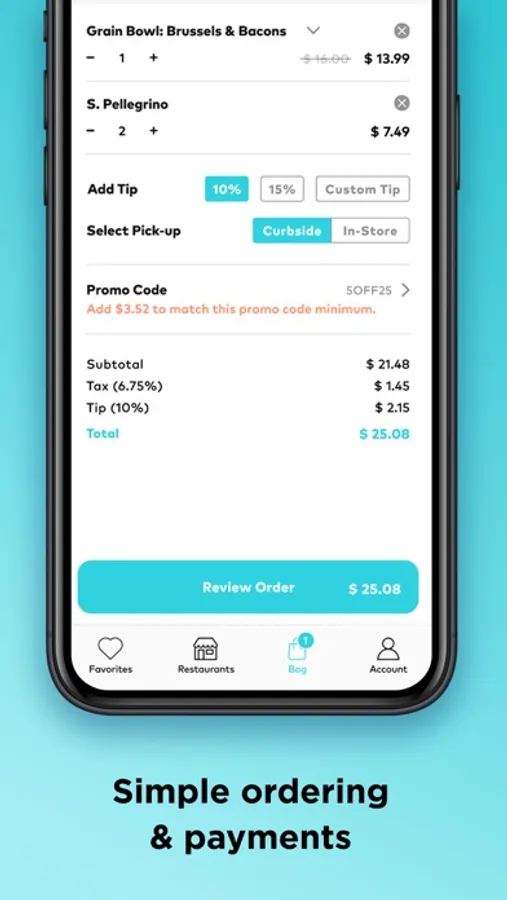 • Zero-fee mobile ordering and curbside service from local restaurants.