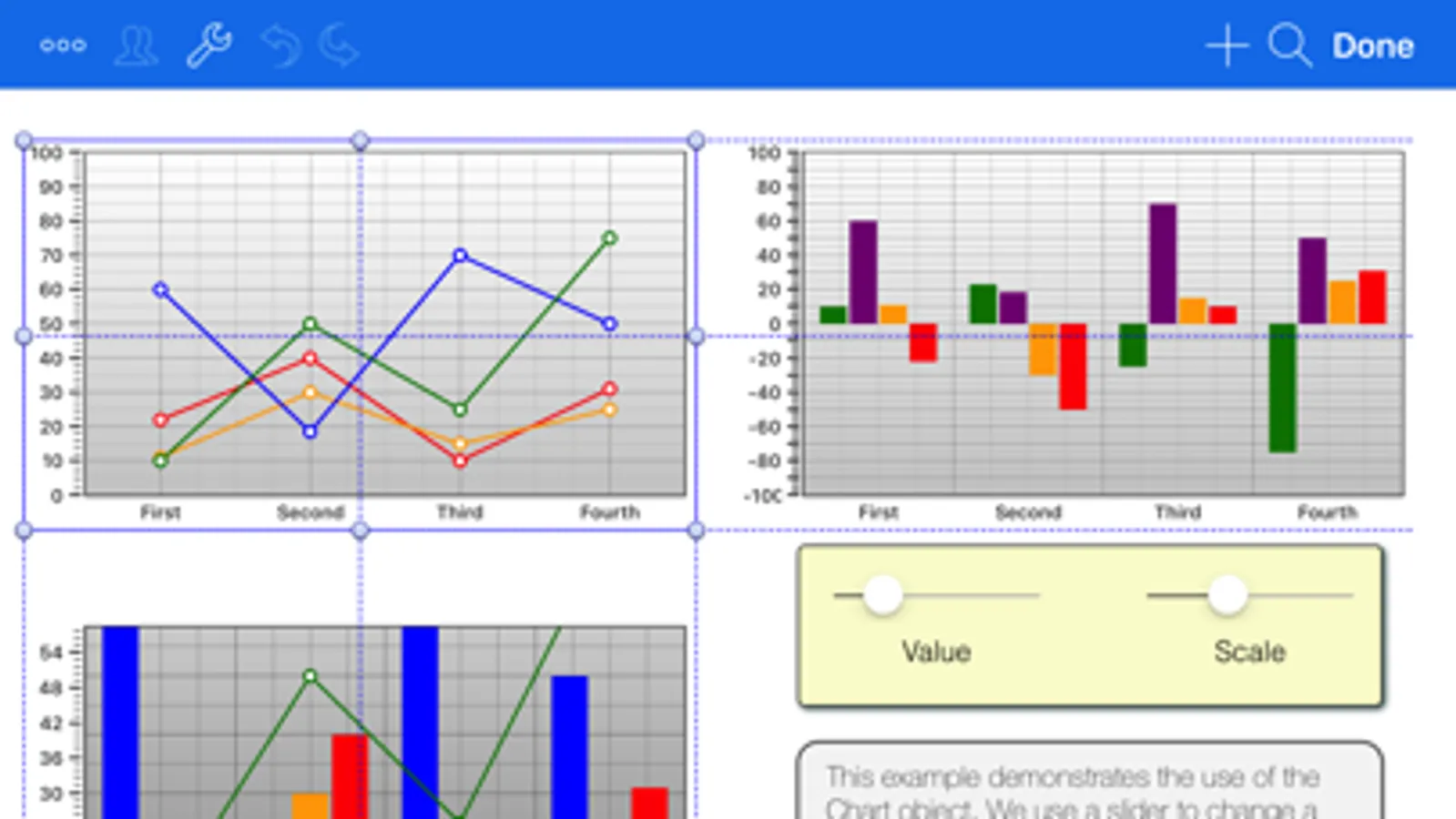 Projects are created like a mix of PowerPoint and Excel. The concept is quite simple. You lay out elements such as Sliders, Switches, Buttons, Images, Text Fields, Knobs, Trends, Gauges, Bar Indicators, Web browser, Array pickers, even Gesture Recognizers and much more onto pages. You connect on-screen objects with iPad sensors and PLC tags through simple links or powerful expressions. That's it !!. The result is a stunning, dynamic, real-time presentation of your PLC controlled process as you'd never imagined.
