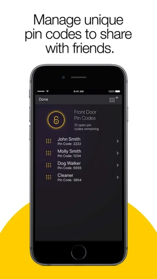 · Create, manage and delete user PIN codes (up to 25) to share with friends and family.