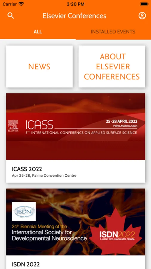 With over 50 conferences a year the Elsevier portfolio of events provides a direct route to global researchers and industry representatives in a number of communities. Our conferences App provides a rich delegate experience with access to conference programmes, speaker information, abstracts, floor plans and sponsor & exhibitor information.