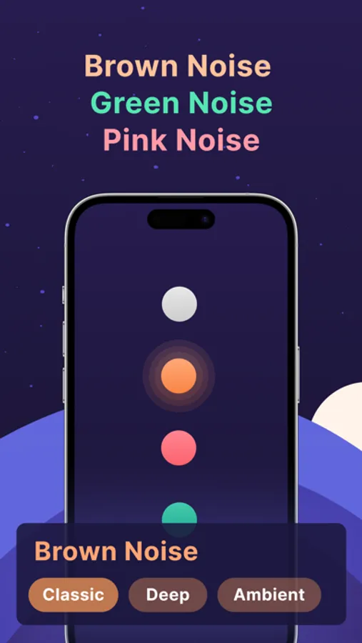 Fall asleep easily, focus, or relax with brown noise, green noise, pink noise, and white noise, plus an integrated sleep timer.