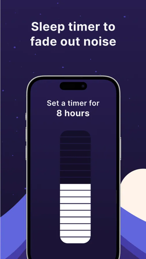 Noise Machine features a sleep timer to automatically turn off noise at night after a set time. Some people like to fall asleep by relaxing with noise, but find that they prefer the noise to fade out during sleep. Set a sleep timer to your desired time and the noise will fade out very slowly.