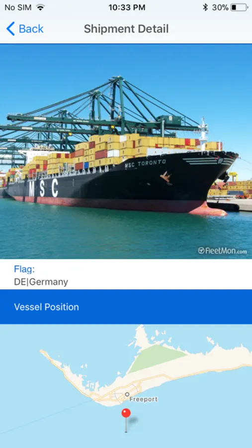 Shipment Tracking allows searching by various criteria such as shipper, consignee, PO# and other references, and retrieval of current position of vessel or airplane carrying shipments. Current position contains information such as geo location, speed, navigation status, stops list with times of departure and arrival, and ETA at final destination.