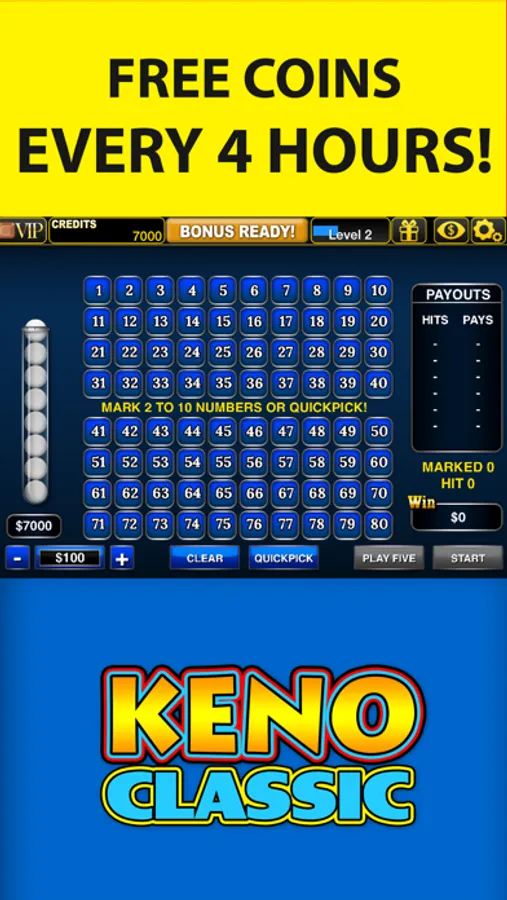 Experience the BIG WIN excitement of Classic Keno in the best Free Keno Game out there!