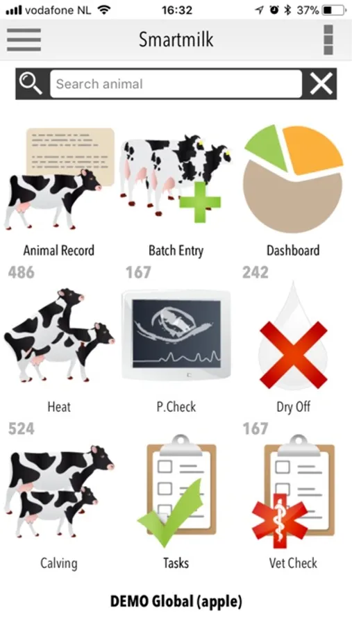 Smartmilk-App is the application for mobile use of the Smartmilk herd management software. This easy to use App has a Farmer Finger Interface, large buttons that are easy to use for farmers.