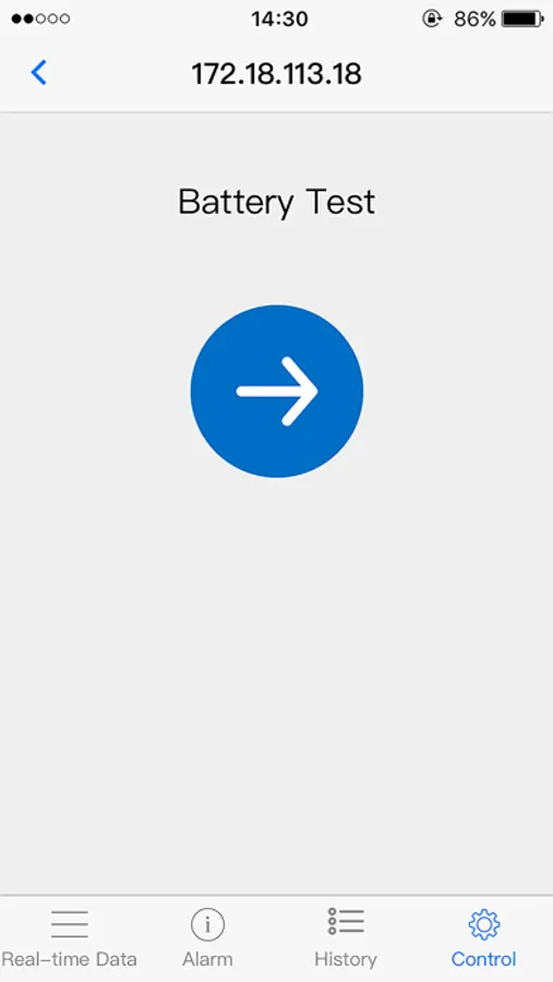 Click the “Control” item to operate battery quick test. For local UPS, user should input the password of agent and then set battery test, please refer to Winpower user manual to get the default password. For SNMP UPS, APP will link to the SNMP test page for setting battery test.