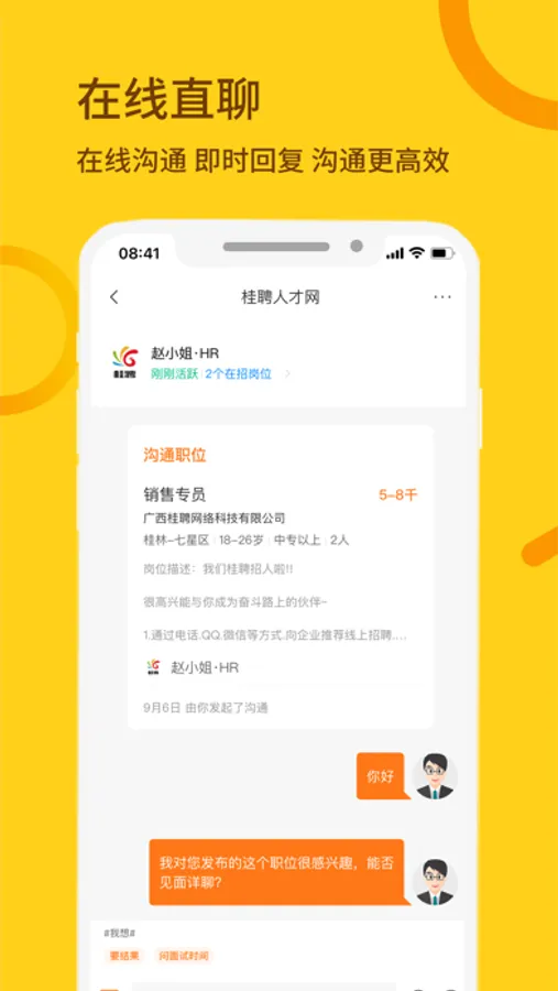 找工作,招人才都上桂聘,线上沟通,不错过任何好机会。