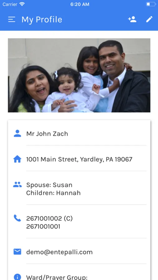 ■ User can update their family details (address/telephone/email updates); Updated details are immediately available for other users