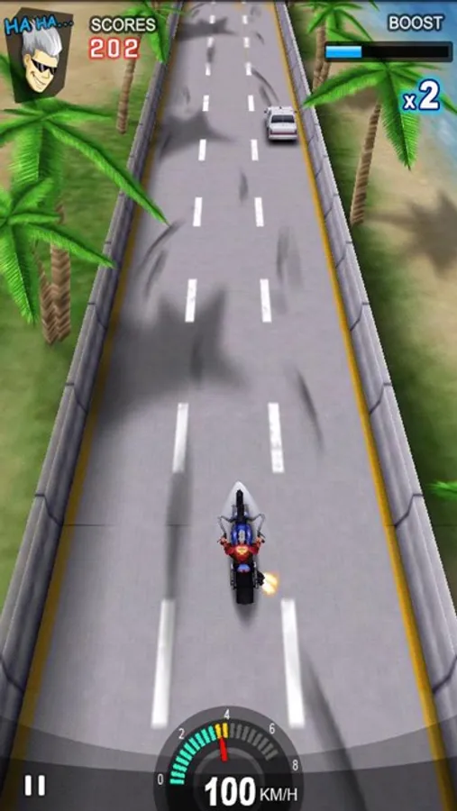 # Keep accelerating moto so that the score will be boosted. The boost factor is shown on the right top of the screen.