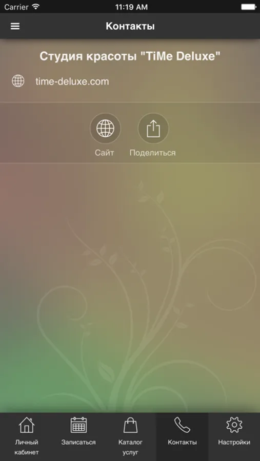 У Вас будет возможность совершить телефонный звонок прямо из приложения, а также перейти на профили студии красоты в социальных сетях и подписаться на них.