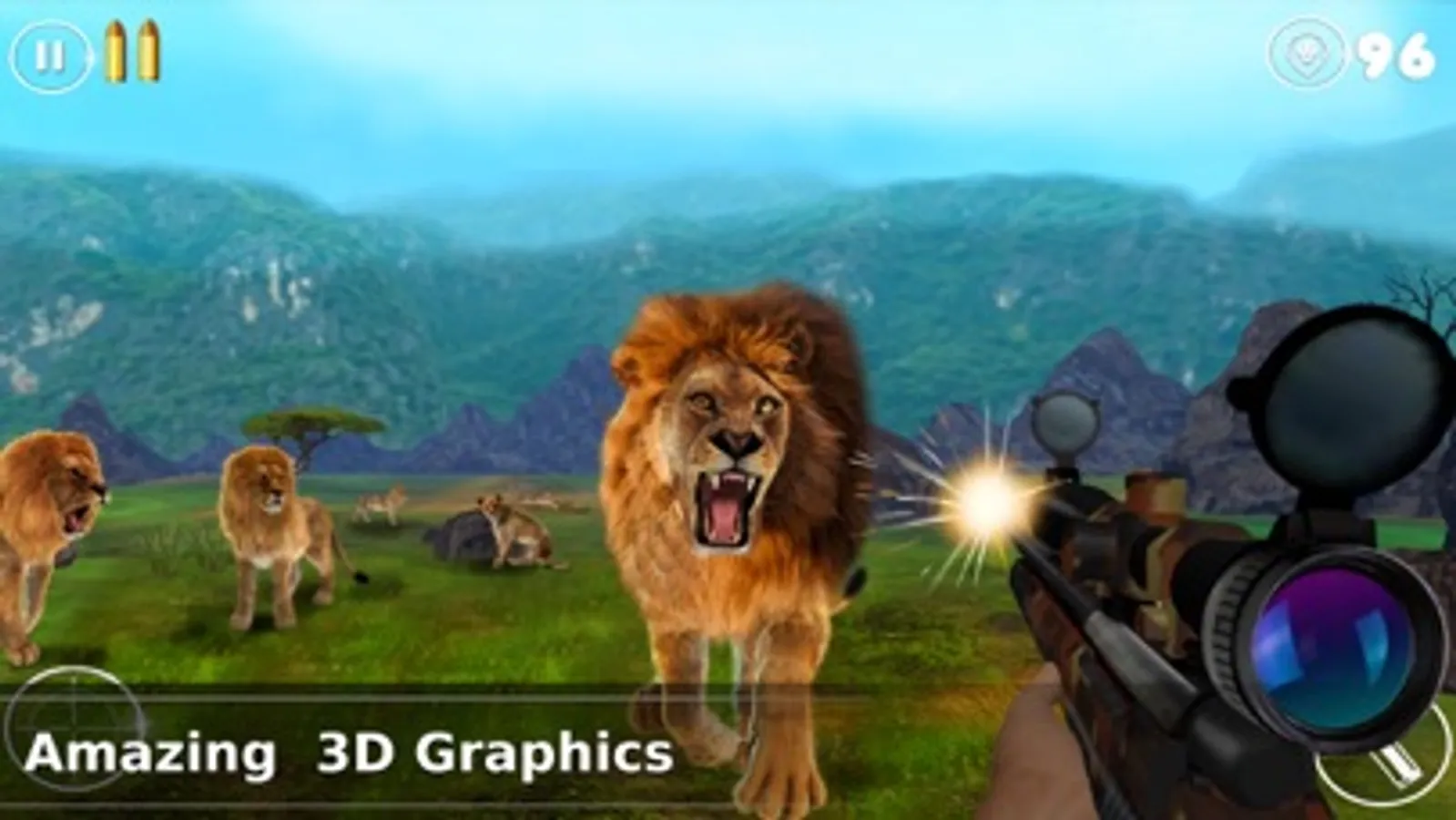 In the hunter mode of this game, you have to initially hunt the female lions and later hunt the male lions, which are of attacking nature. In the hunter game play mode, you will be given a score, based on the number of lions you hunt.
