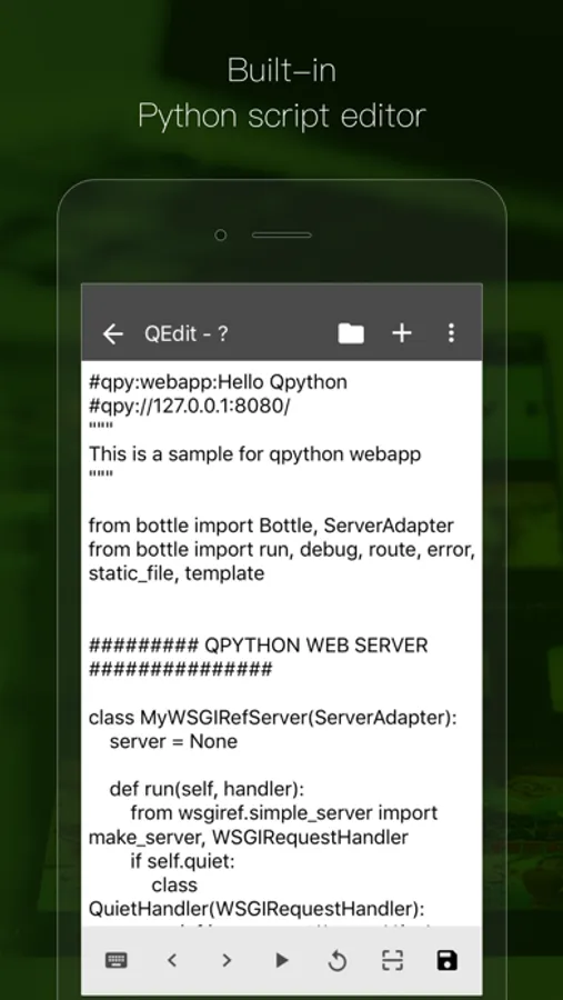 QPython is a Python script on iOS. It contains the Python interpreter, console, editor for iOS.
