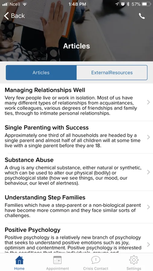 The app provides employees with direct access to support and assistance - 24 hours a day, 365 days a year. The EAP service is aimed at providing short term solutions focused counseling assistance, with concerns that may be disrupting general wellbeing and effectiveness in your work and personal life.