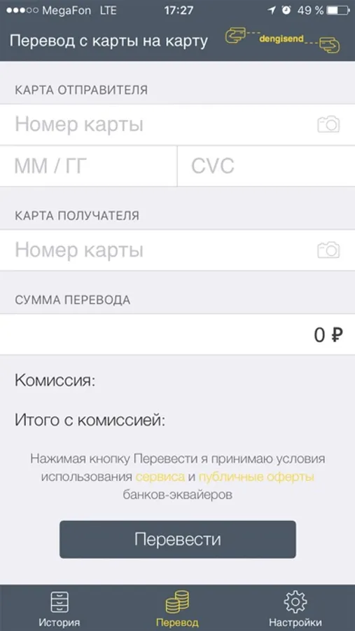 «DENGISEND» Перевод с карты на карту – это простое, удобное и безопасное мобильное приложение, которое без регистрации позволяет в режиме реального времени, в любом месте и в любое время, совершать переводы денежных средств между банковскими картами Mastercard, Maestro, Visa и МИР.