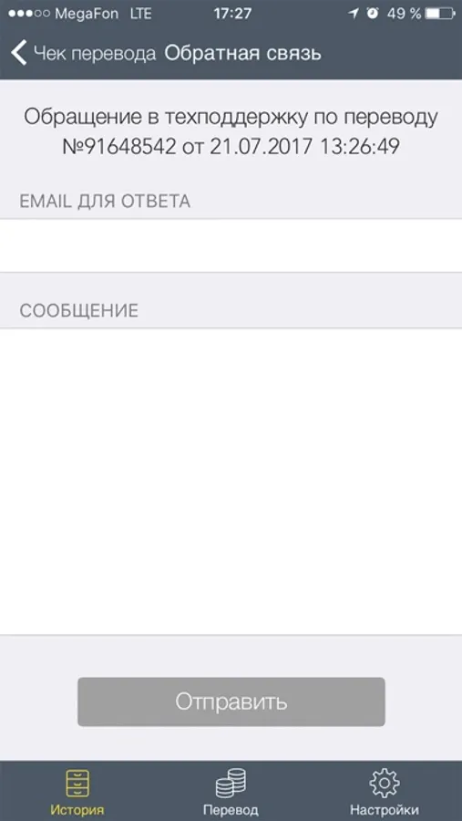 - Отправляет чек о переводе на электронную почту, сохраняет или распечатывает;