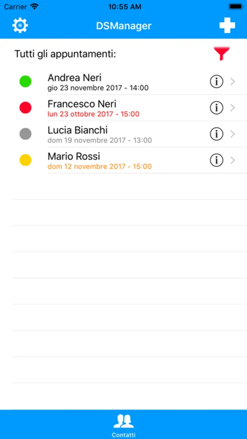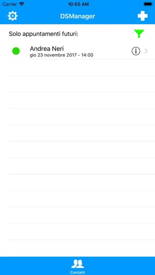 Con un solo click puoi vedere solo gli appuntamenti futuri o vedere tutta la lista dei tuoi clienti.