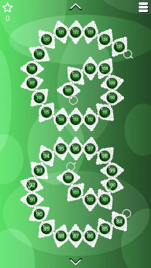 You earn points for each pattern you complete. The number of points increases with the number of completed patterns in the necklace. The first completed pattern in a necklace will result in 1 point, the second in 2 points, the third in 3 points, etc. You will also get extra points for each completed necklace - the points will match the number of completed patterns in the necklace.