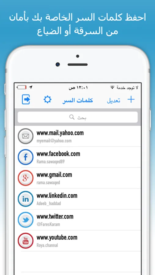 قم بحفظ كلمات السر الخاصة بك في هذا التطبيق الآمن,يمكنك حفظ و ادارة كلمات السر لجميع المواقع بسهولة.التطبيق محمي بكلمة سر رئيسية و يمكن ايضا استخدام الدخول من خلال البصمة