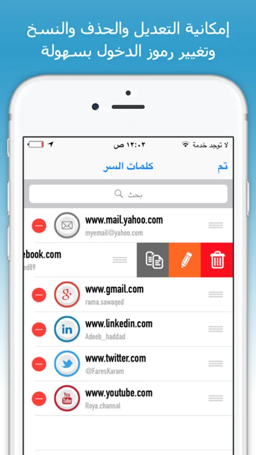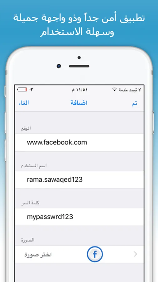 - حفظ كلمات السر مشفرة بداخل التطبيق
