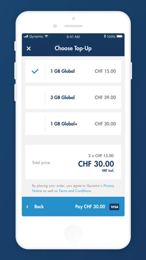 You can buy your Q-SIMs, manage your account, purchase additional Q-TopUps and monitor your mobile data consumption through the Qynamic App. Everything what you need at your fingertips!