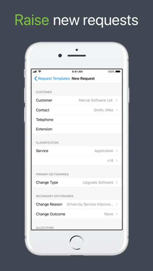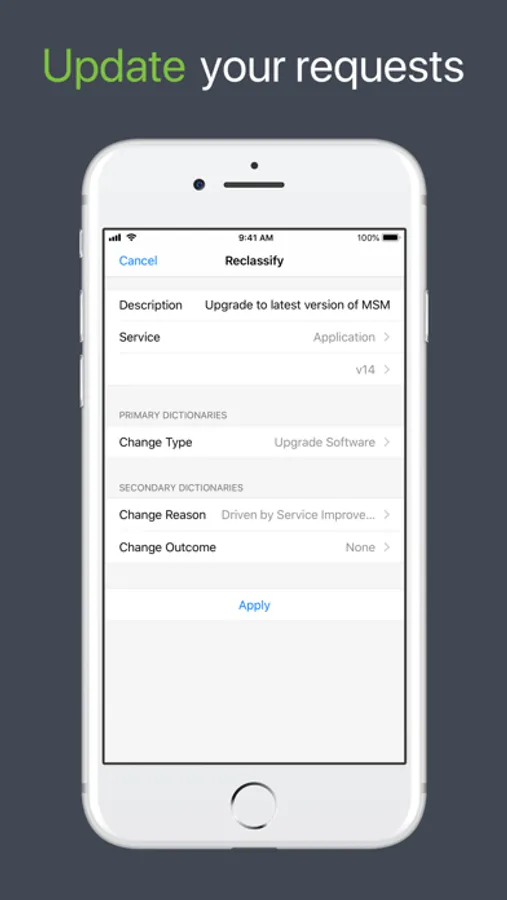 • Update requests (add note, move status, reassign, reclassify and add attachments)