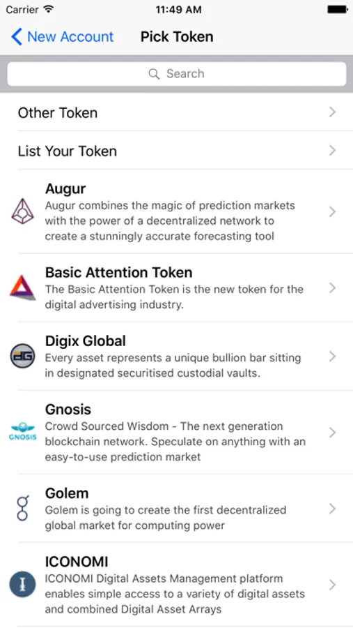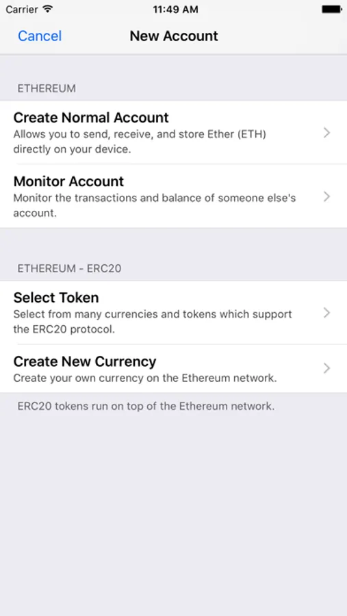 ERC20 tokens are cryptocurrencies which run on top of the Ethereum network. You can create an account to hold any ERC20 token, either by selecting from our list of top tokens, or by scanning or entering the Contract Address of the token.
