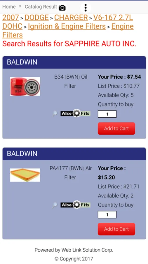Sapphire Auto customers can scan VIN and/or UPC bar codes, which will be decoded and transferred into the Sapphire web store for lookup and ordering.