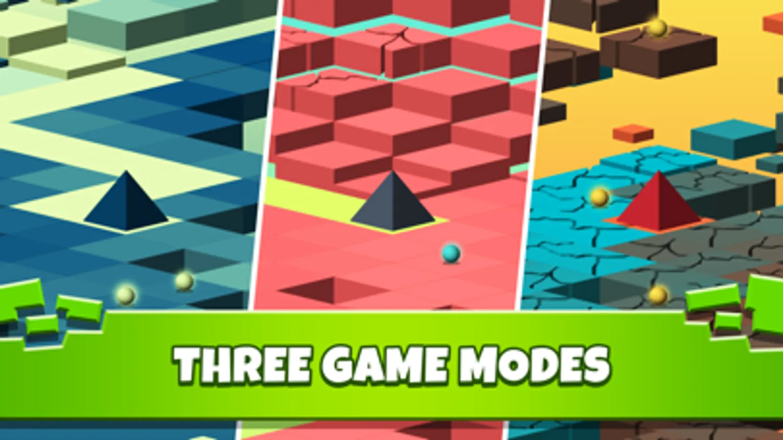 Tap the sides of your screen to move left and right across the plain. Collect spheres and booster items while dodging falling blocks and crumbling tiles to survive. The farther you go, the more difficult your escape becomes. Choose your path wisely… once you move forward, there’s no turning back.
