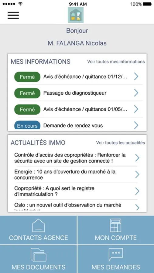 Notre application mobile permet à nos clients locataires, propriétaires ou copropriétaires de retrouver l’ensemble des documents sur leur compte, la comptabilité associée et les événements relatifs.