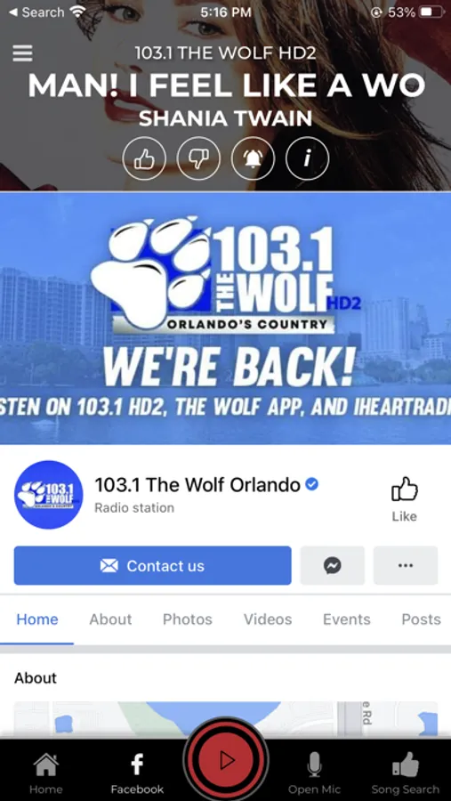 Welcome to your direct connect for 103.1 The Wolf HD2! The Wolf is custom-built for Orlando featuring the biggest Country hits!.