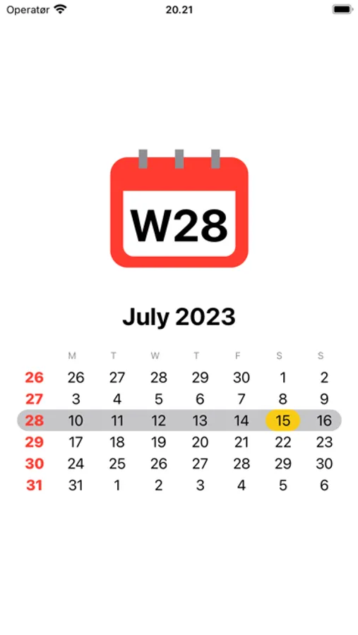 See the current week number with a glance at your watch or iPhone/iPad. Scroll through month overviews using the Digital Crown when opening the Watch app, or swipe between months on the iPhone and iPad. Use the shortcut actions to do week number calculations from shortcuts (requires iOS 16+).