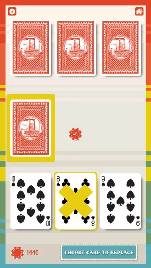 Riverboat Switch is a new variant on 3 card poker! Unlike conventional 3 card employs additional strategy and decision making. Players can pay additional chips to trade one card from their hand with a mystery “switch” card to try to improve their hand before the final bet.