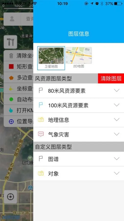数据视图:包含卫星影像、二维地图、不同层高风资源图谱、地理信息图层和气象灾害图层等丰富的数据视图;