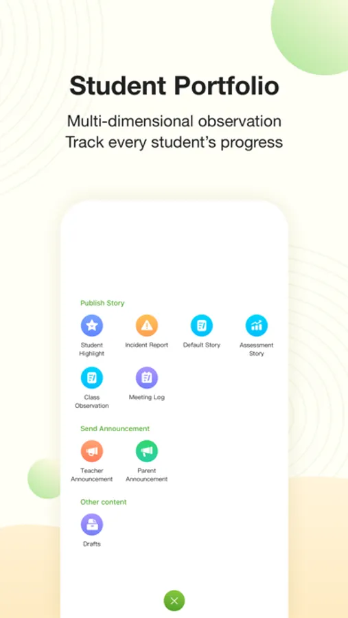 You can use our App to create your own school. Teacher can record the student's behavior record, record the course design, record the teaching reflection, carry out the class management and so on.