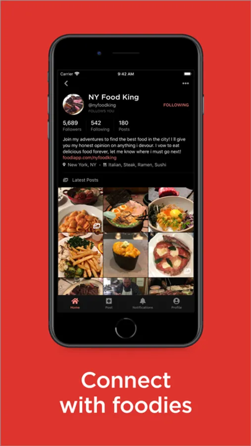 • Follow foodies with similar taste nearby and find out what they like. Build your reputation and influence foodies like you.