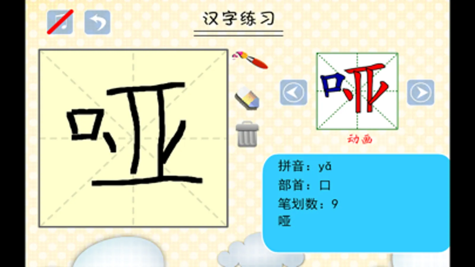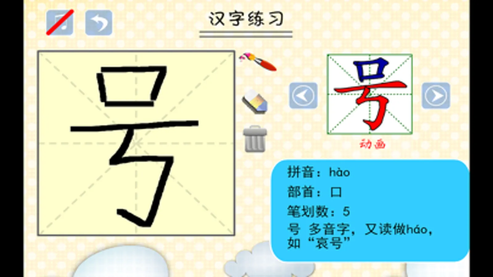 1、笔顺动画,以动画形式演示给孩子看字的书写过程。