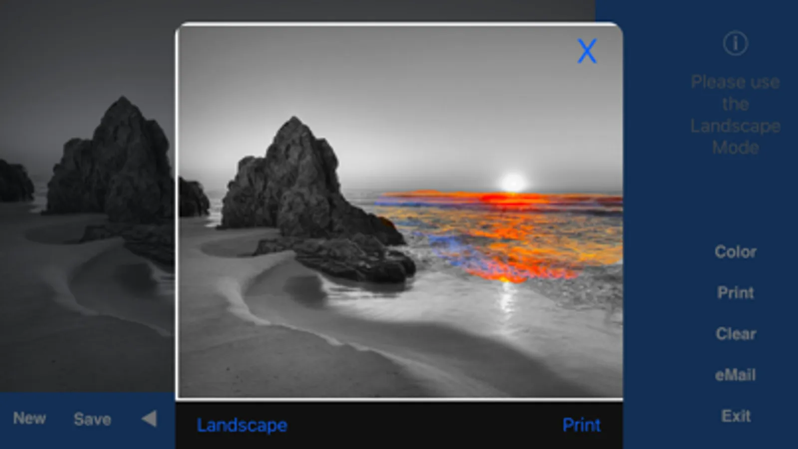 When you open a photo from the photo album, it is first converted into black / white. Now you can color the photo, i. Certain area. This effect is known for example as a color splash effect.