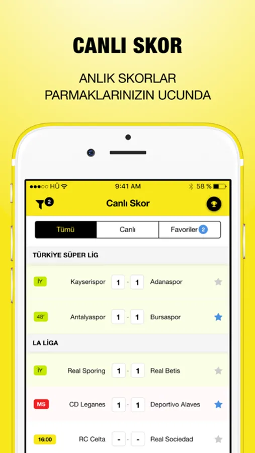 - Anlık Bildirim: Tüm ligler ve maçlar ile ilgili, canlı sonuçlar, gol bilgileri ve daha birçok detayda anlık bildirim alabilirsin.