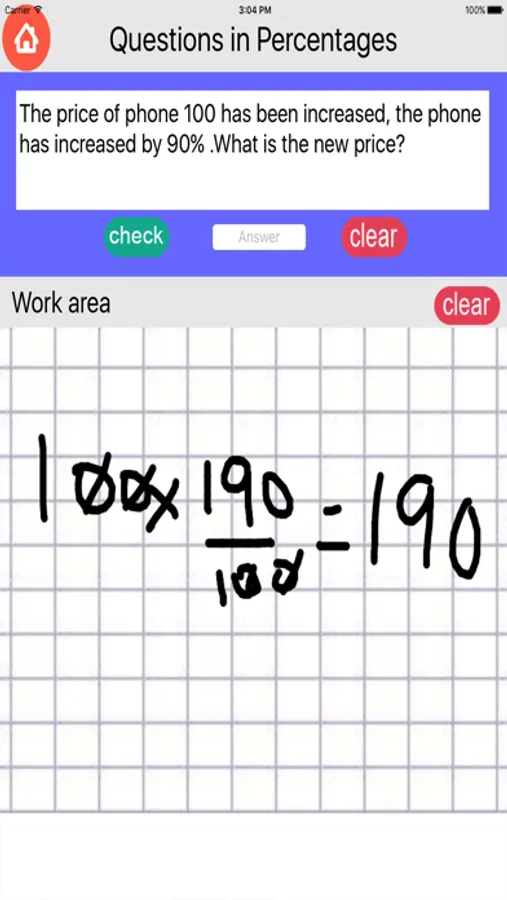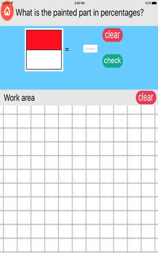 Application for practicing decimal fractions, fractions and percentages.