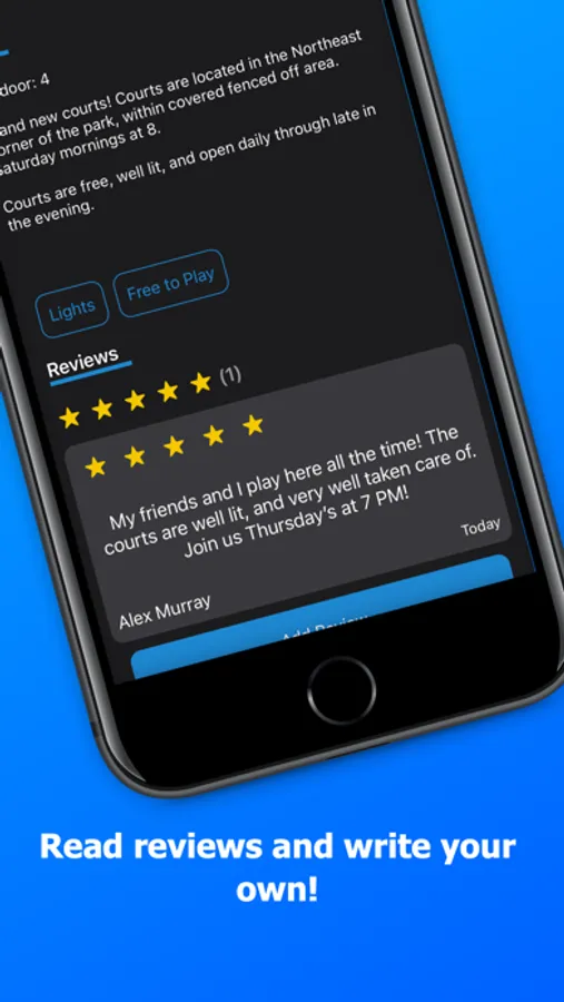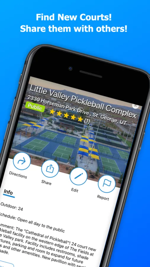 Add and edit details about your favorite places to play pickleball, so others can play there too! You can now even snap a picture of the court in the app and upload it for all to see!