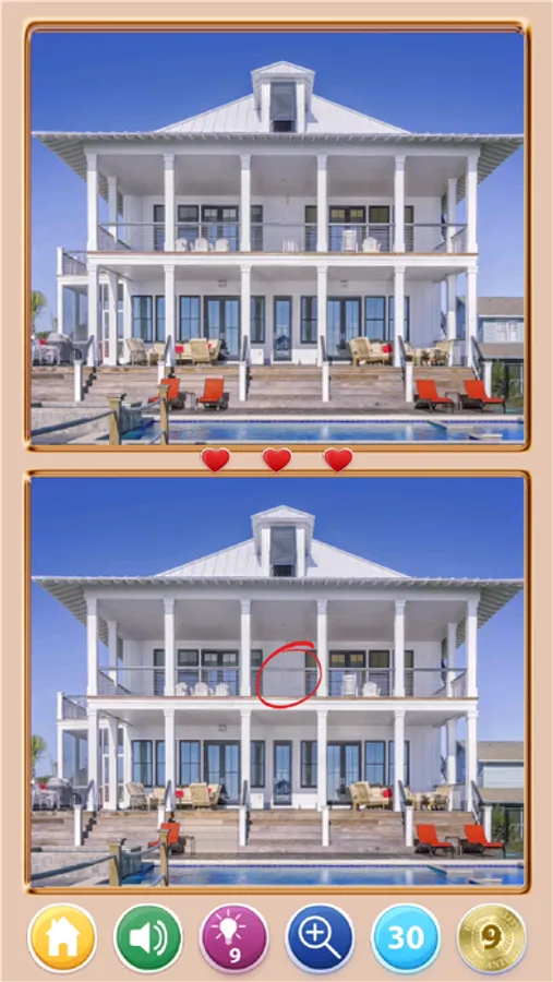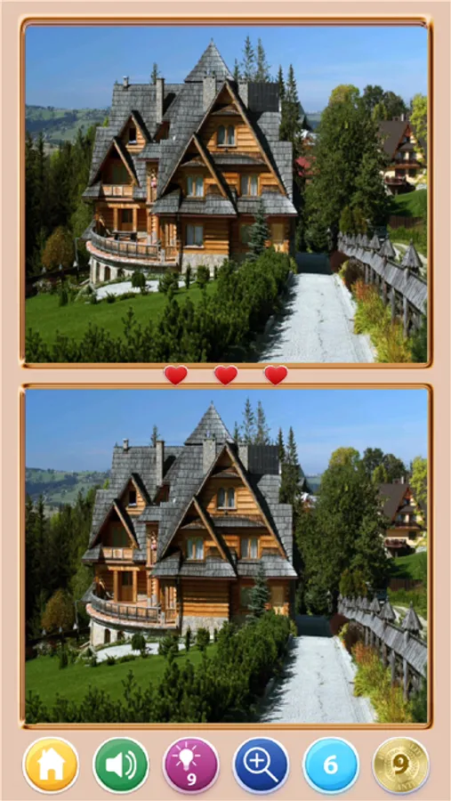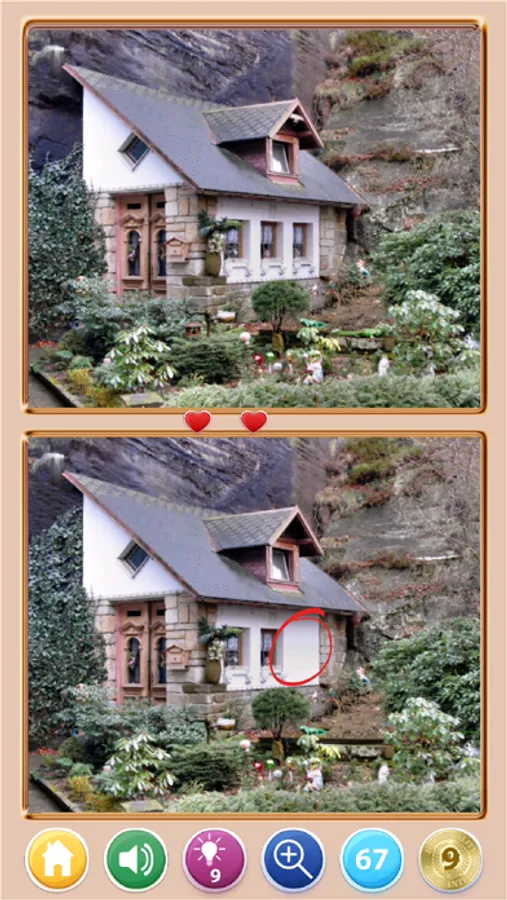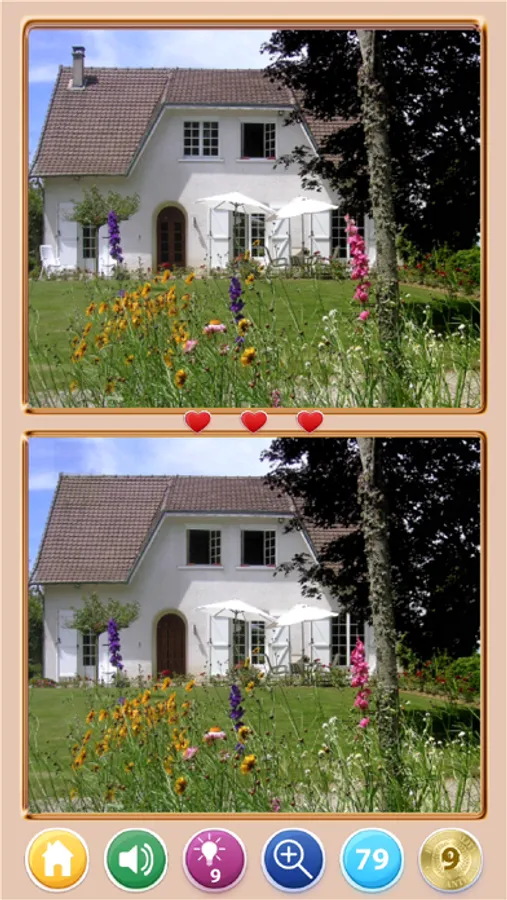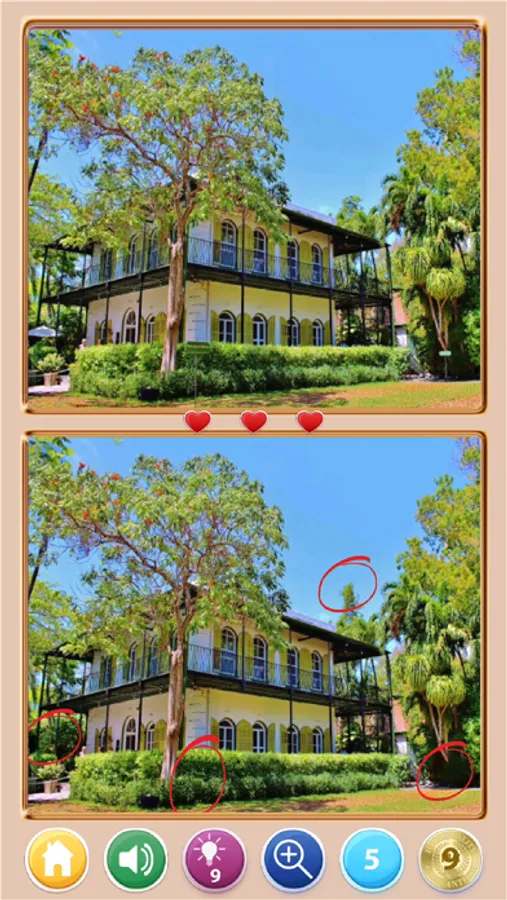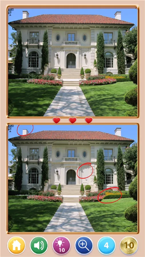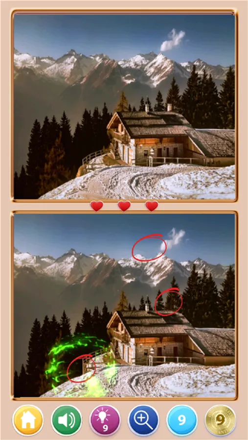 Compare two images, search and find 5 differences. Get hints for fast difference detection.