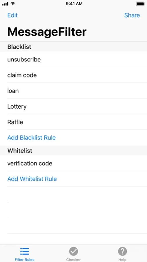 MessageFilter app identify and filter spam messages by keywords and phone numbers.