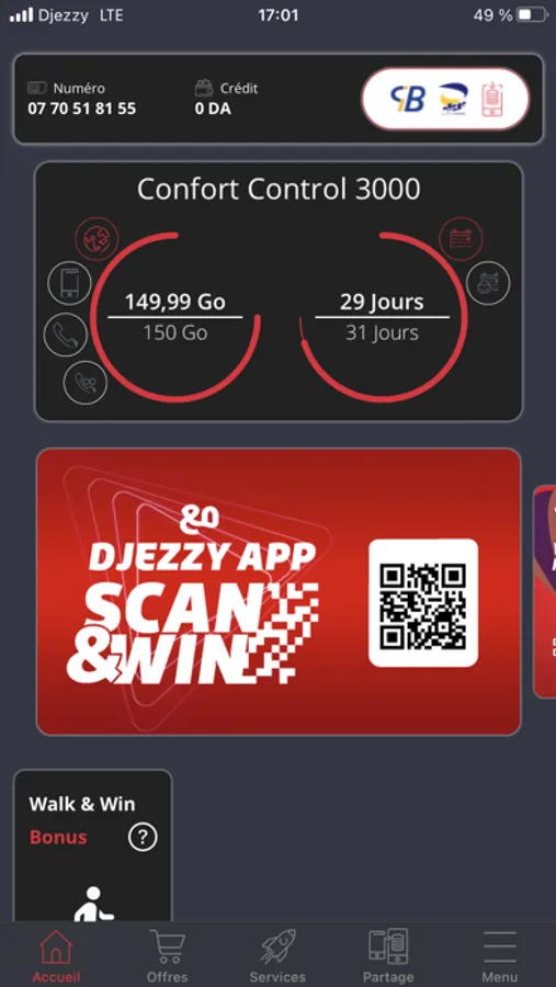 To have full advantage of the Djezzy App, make sure you are connected to the Djezzy network and not to wifi or other.