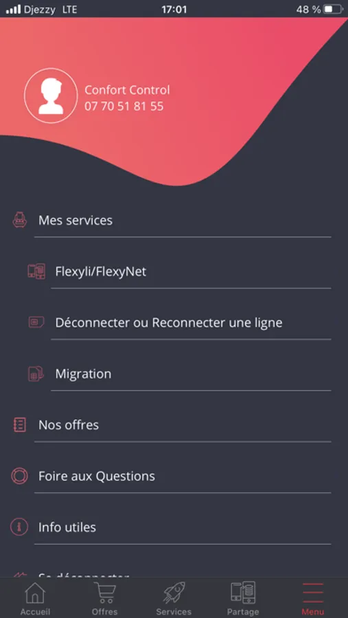 The Djezzy App will allow you to control your SIM card via various actions that you can do by youself via your smartphone and without moving, such as: SIM disconnection or reconnection, code request, refill, find the nearest Djezzy shop or contact our customer service.